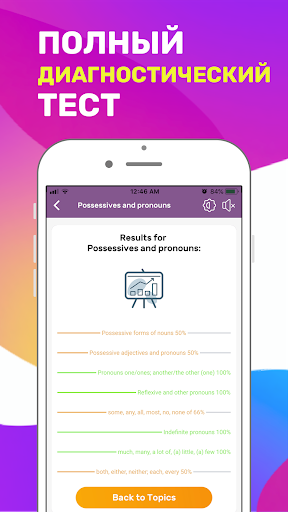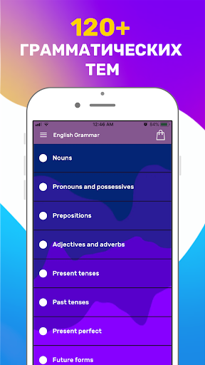Это лучшее бесплатное приложение для изучения грамматики английского языка охватывает более 100 популярных грамматических тем с простыми объяснениями, множеством примеров и красочными картинками. Все грамматические темы доступны бесплатно. Это приложение по грамматике английского языка идеально подходит для начального и среднего уровней. Более 2000 грамматических вопросов постепенно улучшат ваши навыки. Завершив тест по английскому, вы увидите, в каких аспектах грамматики английского языка вы хорошо разбираетесь, а какие требуют дополнительной практики.
