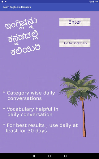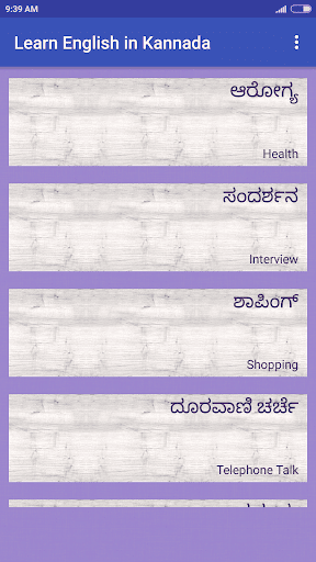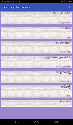 Kannada to English speaking makes easier for the user to understand English. Learn English in Kannada application has audio support for learning pronunciation of words and conversation.