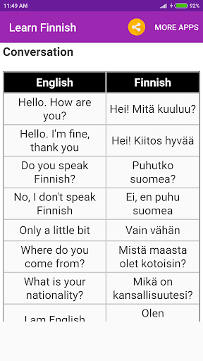 Узнайте финку с 5 минутами практикиежедневно.Edu Technologies - это быстрое решение, которое научит вас основным финским словам и финским фразам для разговора, как и книга фразе.Если вы хотите учиться за пределами оснований, есть также доступны финские уроки грамматики.Это даже отлично для детей!