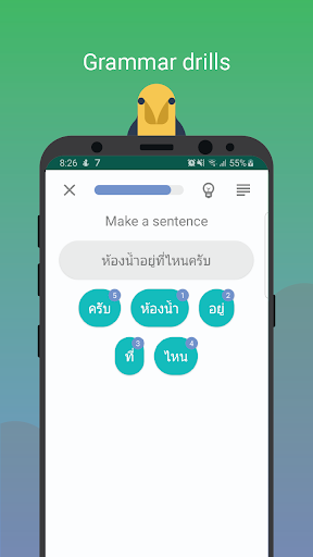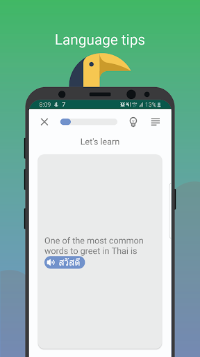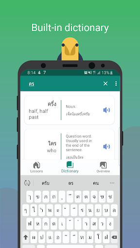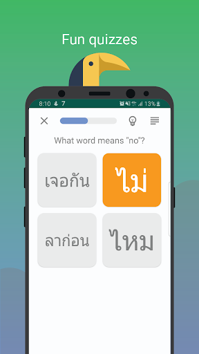 Узнайте тайский язык из мини-уроков и улучшите свои навыки в веселых играх и викторинах!