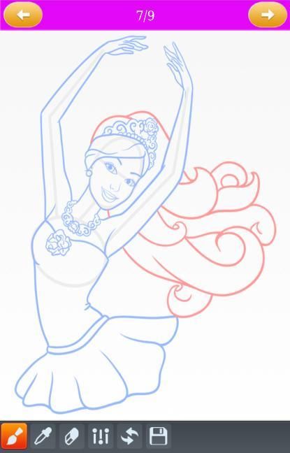 с этим приложением, вы будете учить вас, как рисовать ваши прекрасные куклы Барби символы (Барби, Alexa, Кен, Kristyn, Ньютон) и получить новые идеи для рисования для детей.