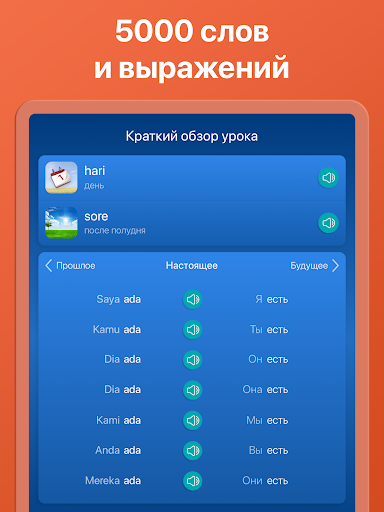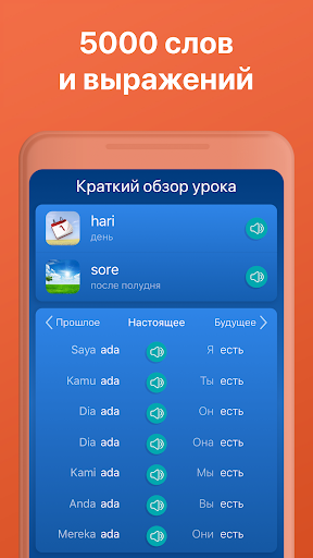 Проработайте языковые упражнения для развития навыков чтения, слушания, письма и говорения, совершенствующие словарный запас, спряжение глаголов и оснащённые передовой технологией распознавания голоса. У вас будет такое впечатление, будто в вашем кармане находится ваш персональный учитель индонезийского языка.