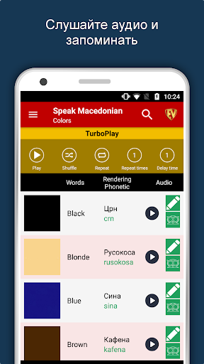 Изучайте и говорите по-македонски с английского, итальянского, немецкого, португальского, сербского, голландского, албанского, греческого, турецкого, польский, хорватского через аудио, фонетику, изображения и игры.