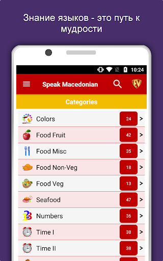 В автономном македонском учебном приложении имеется 2135 слов с 55 категориями. Он содержит произношение, изображения и фонетику слов для легкого обучения. Основной язык Говорить македонский - это базовый язык переключателя, сохранение знаний в EduBank℠, воспроизведение звука, Potpourri и сохранение игр.