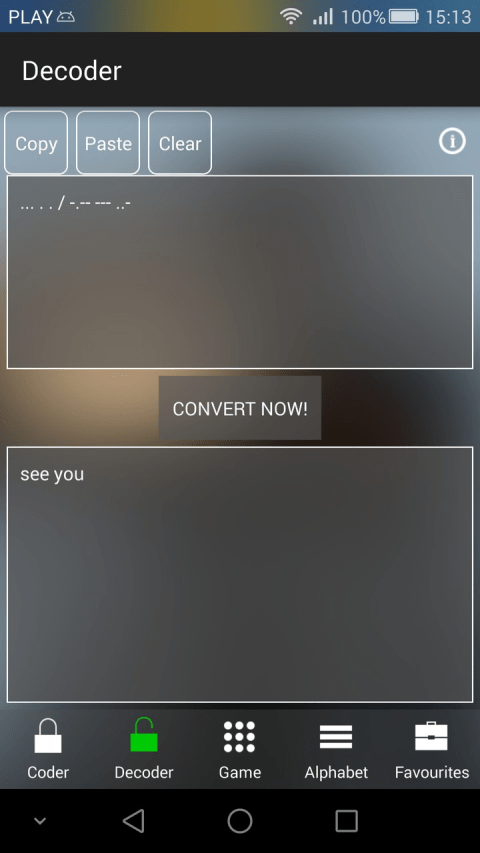 Application for anyone willing to learn about the secrets of the Morse Code messaging. Become a true expert. Transmit messages, play and train with the combination of signs! The clear interface and useful functions allow learning this technique the easy way. The application consists of five modules. -- Message Coding Module -- Text to Morse Code: * Writing and transmitting coded messages by e-mail or SMS. * Audio messages are also available. * Text to Morse Code conversion. * Message playing in audio mode. * Light signal emission from a written text * Adding written messages to "Favorites" -- Message Decoding Module -- Morse Code to text: * Insert any Morse Code in the form and convert into letters * learn a message content with one click. -- Game -- Morse Code: * Play and learn new combinations of signs. * Game Center available * Available equipment: The Morse telegraph and The Morse Code signal lamp. * 8 extended game stages – each in three difficulty levels – finish all and become an expert. -- Alphabet -- Handbook for a true coder, which includes: * Letters – a full description of signs for each letter in most of the world’s languages. * Digits. * Special signs. -- Favorites -- * Prepare a set of favourite messages and send within a few seconds!