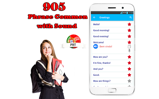 Learn portuguese free имеет 905 общую фразу на португальском языке со звуком, и вы можете использовать все из них без сети. Очень полезно для вас учиться и идти в путь к миру.