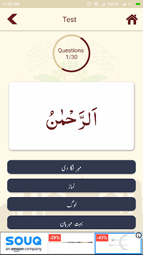 This application is an enhanced version of Learn Quran Vocabulary 100% application to support Urdu and English languages. This application contains 108 common words which covers 25% of Quranic vocabulary. There are 2000 unique words in Quran which covers full Quran vocabulary of 80,000 words. If you learn 33 words in a day then you can learn full Quran vocabulary in 60 days and if you learn 22 words in a day then you can learn in 90 Days.