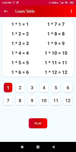 * Learn tables from 1 to 20 quickly and memorize for long time.