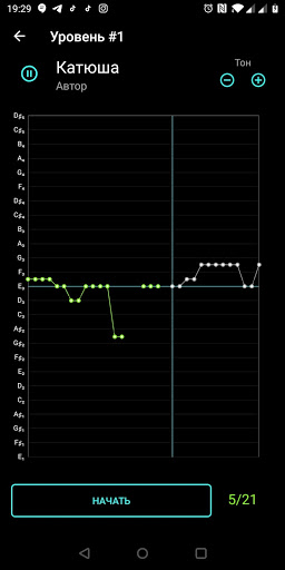 - Приложение контролирует попадание в ноты с помощью микрофона.