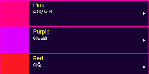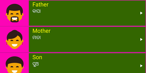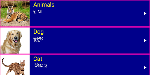 2. English words are provided under many useful categories like animals , birds, fruits , vegetables , colors , people , numbers and sentences to learn important English vocabulary from Odia easily.