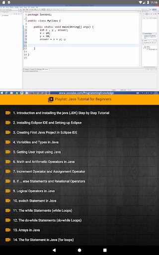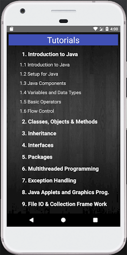 Это приложение предоставляет компиляционные и утешенные учебные пособия. Кроме того, он предоставляет дополнительные программы и уникальную кодирующую почву для пользователей Java, где учащийся может писать и управлять собственными программами и проверить собственные навыки программирования в качестве ученика. Тесты помогут ученику оценить себя на протяжении всего этого приложения. Также это приложение будет поддерживать любое готовность к интервью компании или для вступительных экзамен по вопросам собеседования, предусмотренные в настоящей заявке.