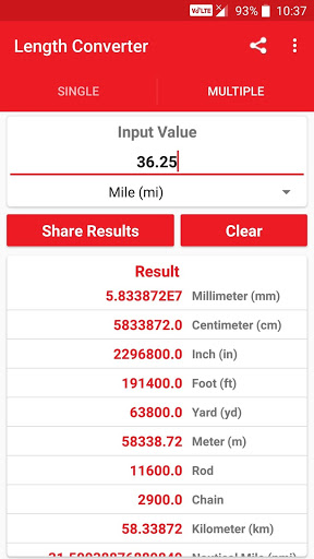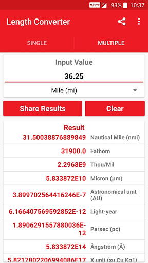 • Метрическая, имперская, морская, авиация, геодезия и научные единицы длины.