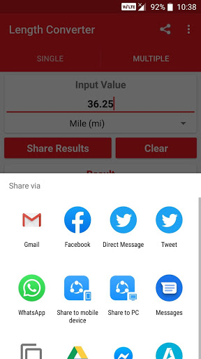 • Расчетные результаты могут быть разделены в социальные сети, почту, сообщения и другие приложения для совместного использования.