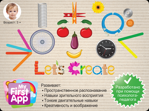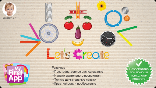 Игра Let’s create помогает развивать креативность, восприятие пространства, навыки зрительного восприятия, мелкую моторику, зрительно-моторную координацию, воображение и такие исполнительские навыки, как планирование и организация. Она предназначена для детей в возрасте от 3 лет.