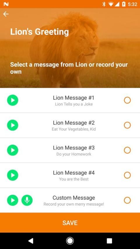2. Выбрал Talking Lion сообщения или записать свой собственный голос льва, так что вы можете получить телефонный звонок от разговора Lion с сообщением по вашему выбору.