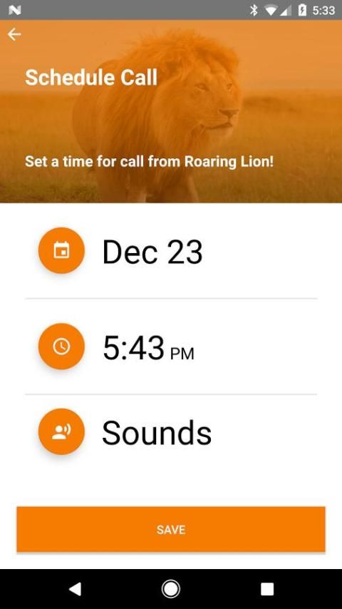 Lion Телефонные вызовы позволяет планировать телефонный звонок принимать телефонные звонки от Real Talking Lion и поговорить с вами на основе телефонного звонка запланированного.