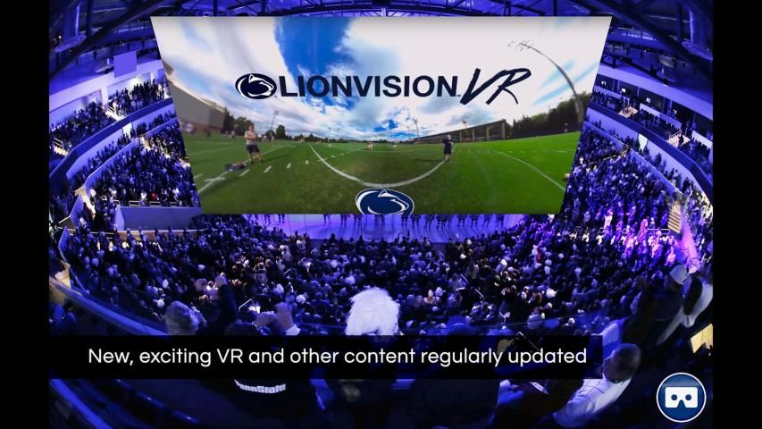 "Вы никогда не задумывались, каково это стоять в скоплении или выбежать из туннеля перед 100,000+ кричащих фанатов на стадионе Beaver? Как насчет быть вратарской против пощечину выстрела в 90 миль в час? Или получать, чтобы увидеть ваши любимые Nittany Lions силовые тренировки сессий? поклонники штата Пенн получить, чтобы увидеть действие, как никогда раньше через свой смартфон. Шаг в виртуальной среде Penn State спортсменов с LionVision VR. Вы идти за кадром практики см шкафчик до и после игры переговоры Зал тренеров и широкий спектр знаковых Penn State опыта, в то время как погруженный в настроенной среде виртуальной реальности. 2D и 360 видео регулярно обновляется с LionVision VR, выращивая библиотеку убедительного содержания.
