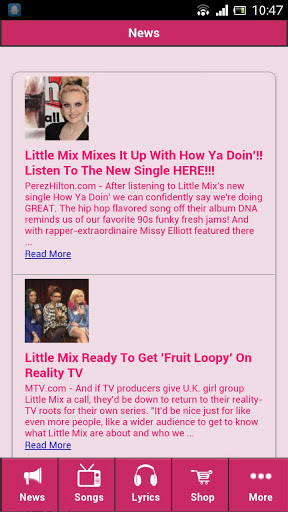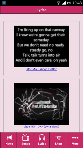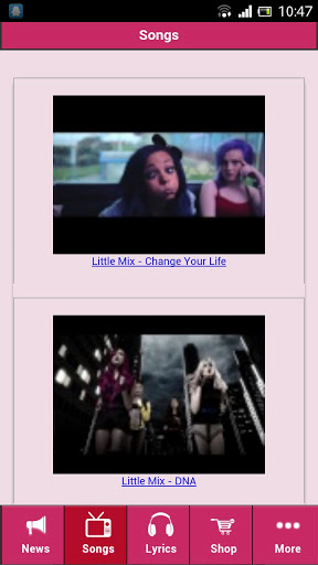 FREE app for Little Mix fans!* Watch all the latest Little Mix songs videos, including Change Your Life, DNA, Wings and all your favorite songs!* Get Little Mix songs' lyrics of Wings, DNA and more so you can sing along while* Access to Little Mix's official twitter and facebook pages* View photo galleries packed with great Little Mix pictures, album covers and more* Shop Little Mix CDs, posters and other products online in the app* Keep up with Little Mix's latest development by reading all their up to date newsDownload the app now to love the girls group more!Disclaimer:This app will add a new icon on your home screen that links to a Games, Apps and Android Tricks mobile web page. If you do not want to use this awesome page, you can either ignore it or delete it. If you do use it, we get help promoting this app and make a few cents, it will also help us keep developing more great apps.
