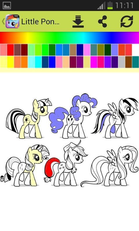 Цвет маленькие пони раскраски на ваш телефон или планшет в этом виртуальном красящего и живописи книги.