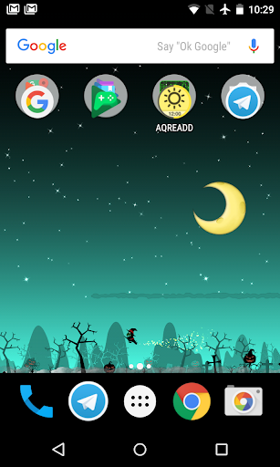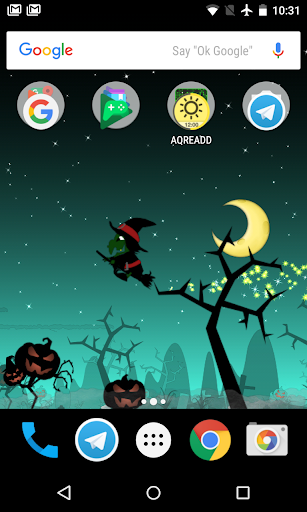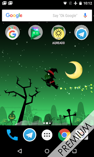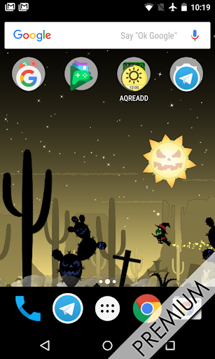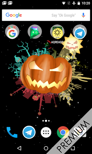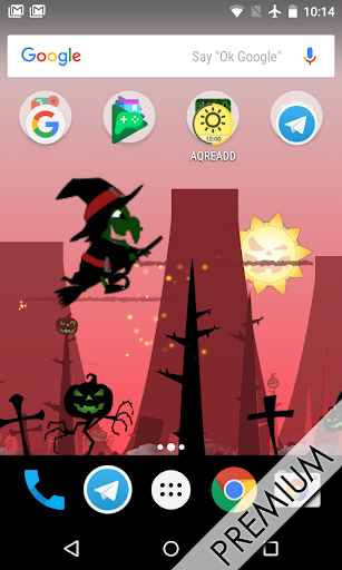 Это бесплатно Halloween Live Wallpaper наполнен злом тыквы в тыкве Planet, см. сумасшедший смех тыквы в то время как ведьмы летают вокруг зло сценариев с волшебной пылью.