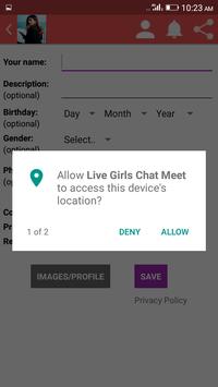 • QUICKLY CONNECT WITH YOUR CONTACTS: Your address book is used to quickly and easily connect you with your contacts who have Live Girls Chat Meet so there's no need to add hard-to-remember usernames.