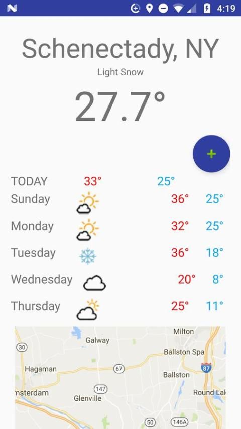Это приложение предназначено, чтобы сделать его как можно более простым, чтобы получить прогноз погоды, где бы вы ни находились. Просто скачайте приложение, запустить его и он будет просить вас разрешение использовать данные вашего-географических телефона для того, чтобы принести вам прогноз, где вы находитесь. После того, как вы в приложение, которое вы можете ввести почтовый-код, чтобы увидеть прогноз в любой точке мира. Вы также можете прокручивать вниз, чтобы увидеть расширенный, пять дней прогноза и живой метеорологический радиолокатор для области.