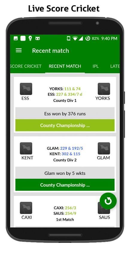 Загрузка Live приложения Cricket Score, чтобы получить последнее действие от мира в крикете с живой системой показателями для всех международных турниров и жить крикет матчи.