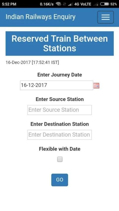 1: Индийская железнодорожная Запрос наличия мест