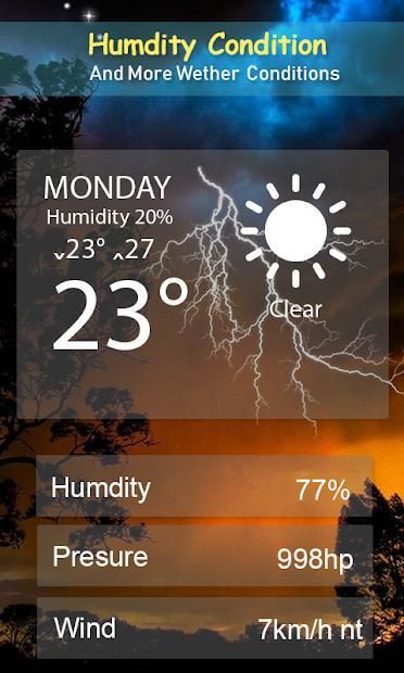 Live Weather App - Weekly Weather forecast keeps you updated with the weather every day. Use this weather app to plan trips and other outdoor activities i.e. bike ride, hunting & fishing. Weather live app is very good in finding the perfect location and the exact temperature. This is great app for getting accurate weather report for today weather, weather tomorrow & weather weekly or monthly weather. Weather Live app provides data specific to user street address. User can also have the ability to obtain weather information for multiple locations around the world. It always keeps you updated on the weather especially when forecasting rain.