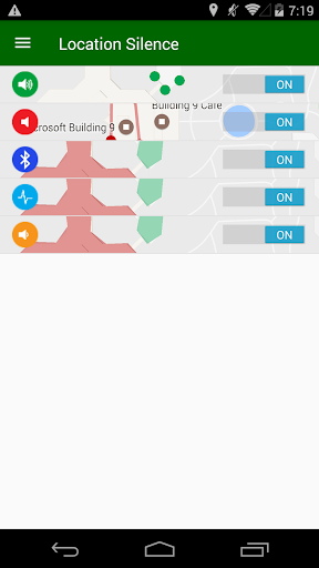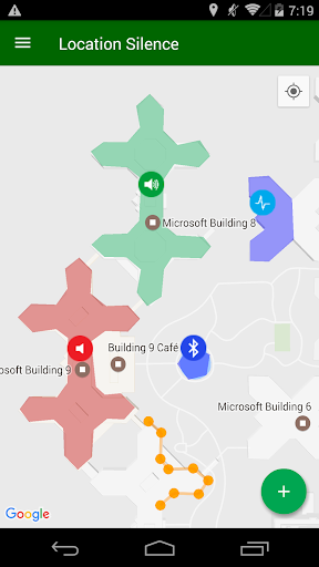 Location Silence is a lightweight app which provides the functionality to set the volume of your device at specific locations. Draw shapes where you would like to set the device volume to Mute/Vibrate/Quiet/Loud. A notification icon always shows the currently visiting area.