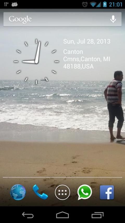 Простой виджет, который показывает место, время в аналоговые часы и дата.