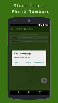 * Save Secrete phone numbers and call them or message them from the app.