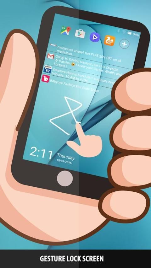 Блокировка экрана с помощью жеста т.е. с использованием формы или с помощью вашей подписи и разблокировать, используя тот же