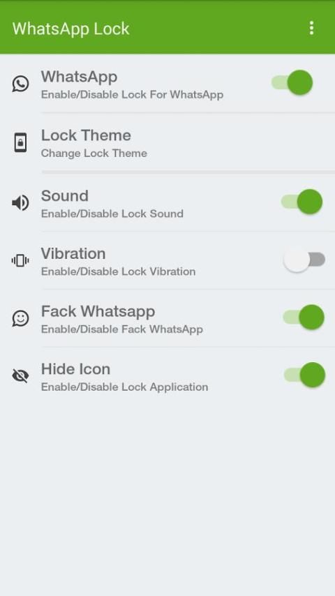 1. Замок для Whatsapp установлен включить или отключить с одним нажатием на кнопку переключения, чтобы нажать.