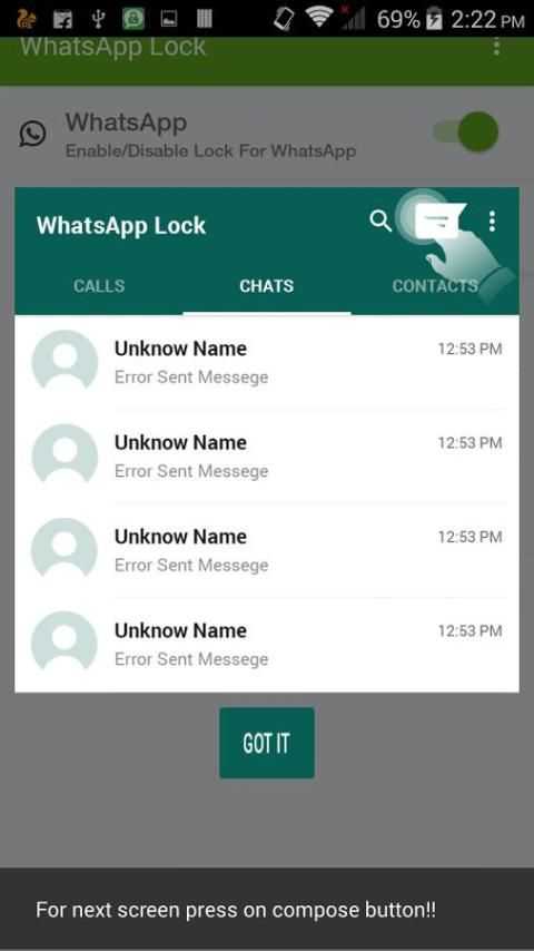 Замок для Whatsapp это приложение, которое поможет вам защитить ваши данные с помощью пароля или шаблона метод так, чтобы никто не может получить доступ к нему больше. Замок для Whatsapp оказывает средство для скрытия иконки для WhatsApp.