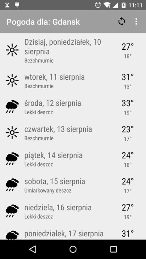 Прогноз погоды для польских мобильных телефонов с Android Долгосрочный