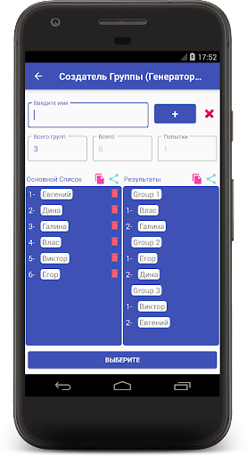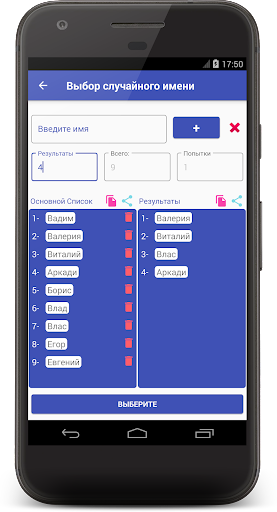 Генератор случайных чисел позволяет выборать случайные имени из списка.