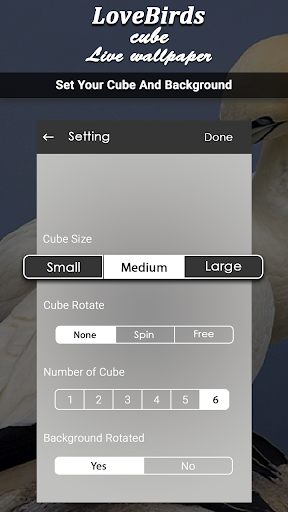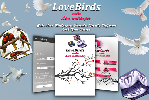 Любовь птица Кубы живые Обои обеспечивают разные и удивительные 3D кубики для производства живых обоев. Love Bube Cube Живые Обои оснащены вращающимся 3D Cube, показывающим фотографии и фотографии из вашей галереи.
