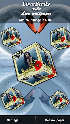 3D Love Bird Cube Live Wallpaper App предоставляет разные 3D Love Bird Cube Live Wallpaper. Это приложение позволило вам установить разные изображения на каждой стороне куба из галереи и различных кадров.