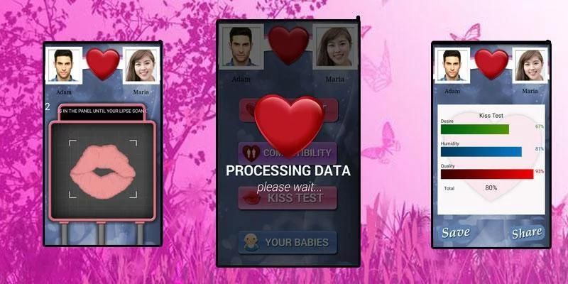Love Calculator App является на самом деле Combo 4 испытания: Испытание любви ,, младенца Тест ,, Поцелуй Тест Тест на совместимость ,,