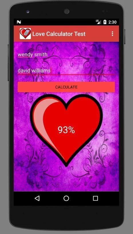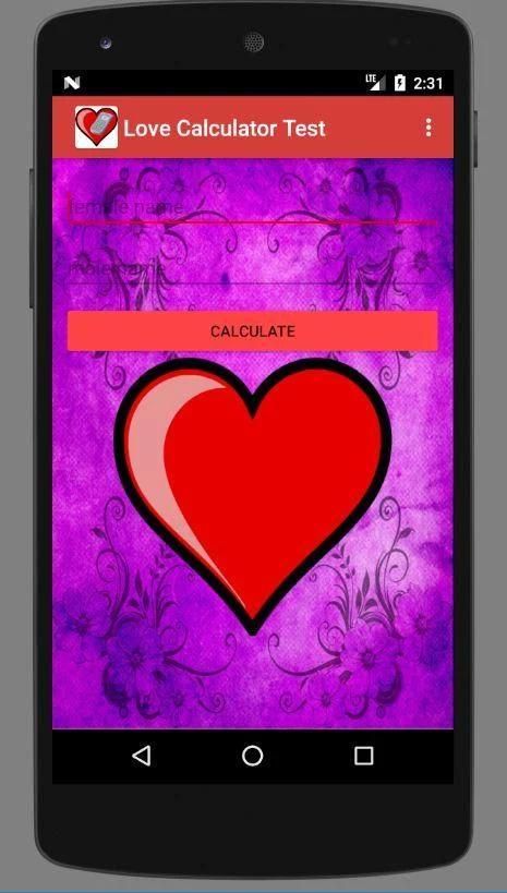 это фантастическое новое приложение и введите ваше имя и ваши партнеры имя в тест любви калькулятора и просто нажмите кнопку Вычислить, чтобы показать процент для вашей любви на основе совместимости ваших имен.