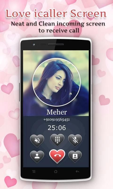 Полностью настроить экран вызывающего абонента HD с красивой с нашим экрана Caller HD на тему любви.