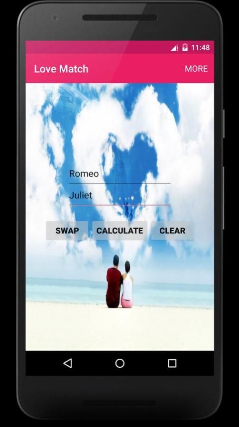Любовь матча классное приложение, которое соответствует любви двух товарищей. Все, что вам нужно сделать, это ввести два имени, и вы мгновенно узнать процент любви, а также тип любви.