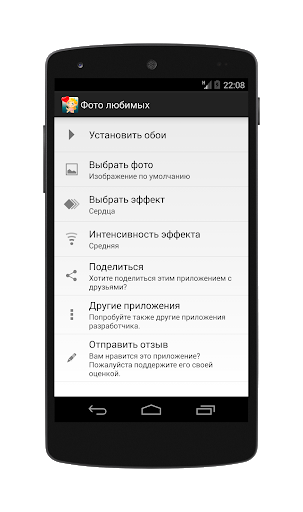 Вы можете установить любую фотографию и выбрать один из предложенных графических эффектов, а также настроить его интенсивность.