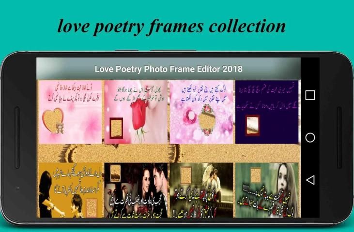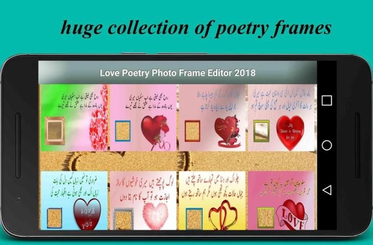 Украсить, украсить и создавать свои картины с любовью урду поэзия фото кадры поэзии может быть 2-х линий, вы также можете добавить свои фотографии, друзей и семейные фотографии может быть, вы хотите добавить бойфренд и подруги фотографии и изображения с мобильного хранения и украсьте это с последними любовной поэзии фоторамок, чтобы выразить свои мысли и чувства для любителей можно выбрать стильные, волшебные и захватывающие кадры фото для ваших фотографий также для вашего любовника и подруга картин. Создание и дизайн сообщения в социальных сетях, статус, DP и накройте картины с любовью романтической поэзии HD фоторамок, скорее всего, статус для Whatsapp теперь дни очень полезными и модные особенности для любителей социальных медиа. Погружения дизайн качества HD фон тема с симпатичной поэзией также с картинками цитаты, диалогами, днем Святого Валентина, день матери мыслью и шуткой. Существует огромная коллекция фонов вы можете легко выбрать свой любимый фон для день рождения, день Святого Валентина, день матери, день труда, день Ид, Бакра Эйд день, хадж день, Новый год, День независимости и женщины день.