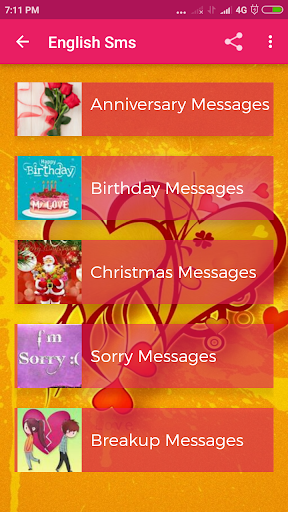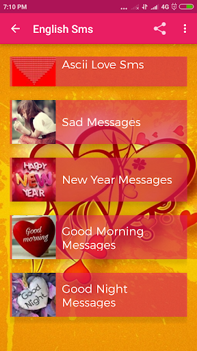 * Только одно прикосновение поделиться и копировать сообщение о любви SMS