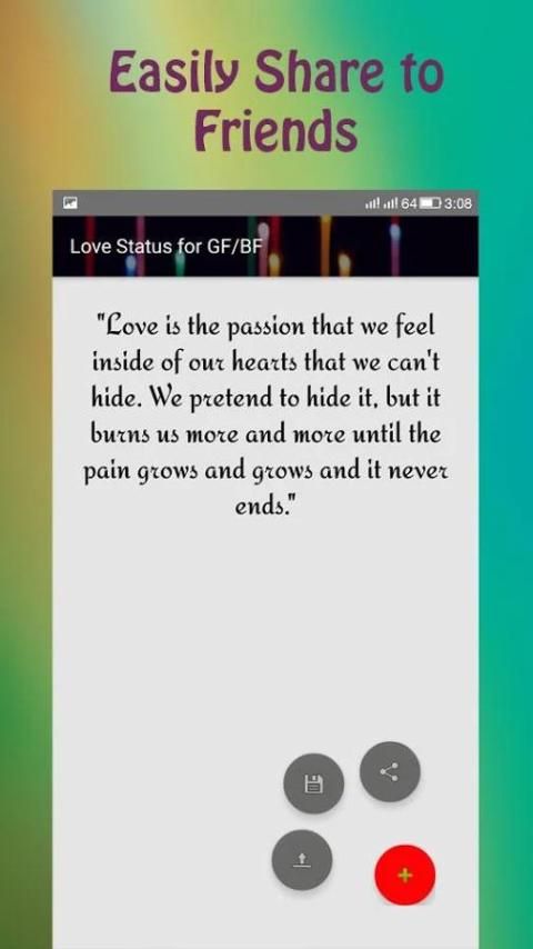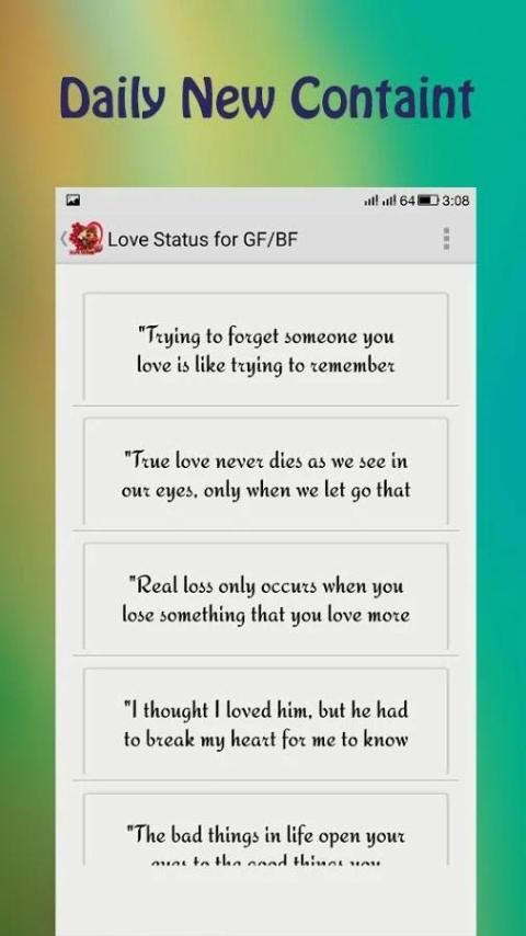Горячие приложения сделают большиое количество загрузок. 30,000+ пользователи скачали последнюю версию Love Status for GF/BF в 9Apps бесплатно каждую неделю! Это одно из моих любимых приложений. Это горячее приложение было выпущено в 2017-10-19. Килк в 9Apps, чтобы узнать больше информаций о мобильном приложении.