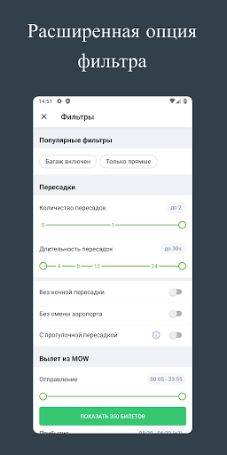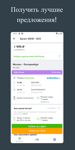 — покупка авиабилетов осуществляется прямо с мобильного устройства: ищите и покупайте билеты со своего смартфона, планшета или умных часов Android Wear.