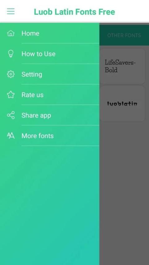 Luob Latin шрифты Free Приложение показывает шрифты, применимые к устройству ясно, так что вы можете выбрать шрифт вам нравится, и применить.