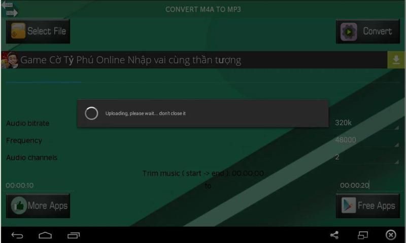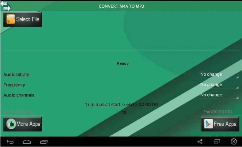 Это единственное приложение доступно на Google Play можно сделать идеальный способ преобразования M4A в формате аудио mp3, если не верю, что можно попробовать поиск и опыт других приложений, всего лишь обман и ошибку в процессе бега.